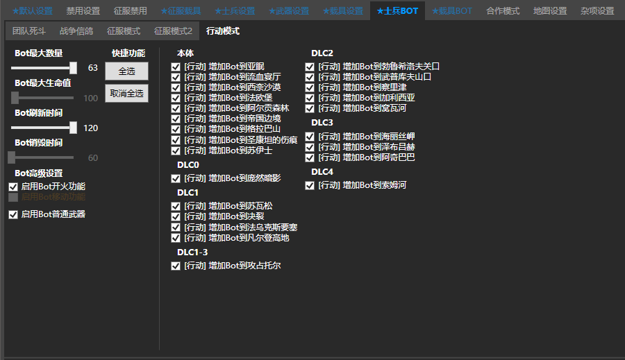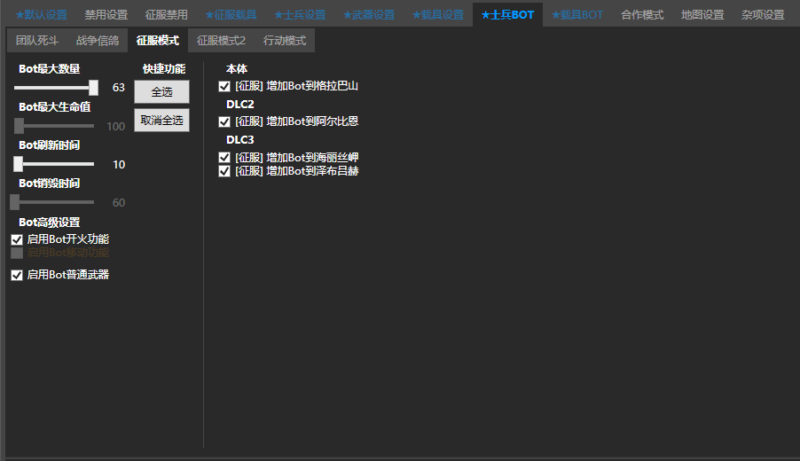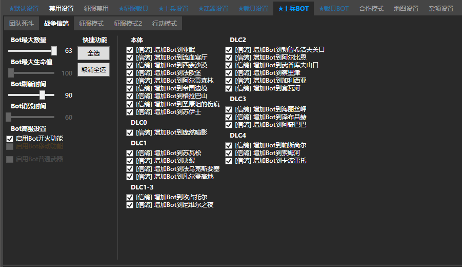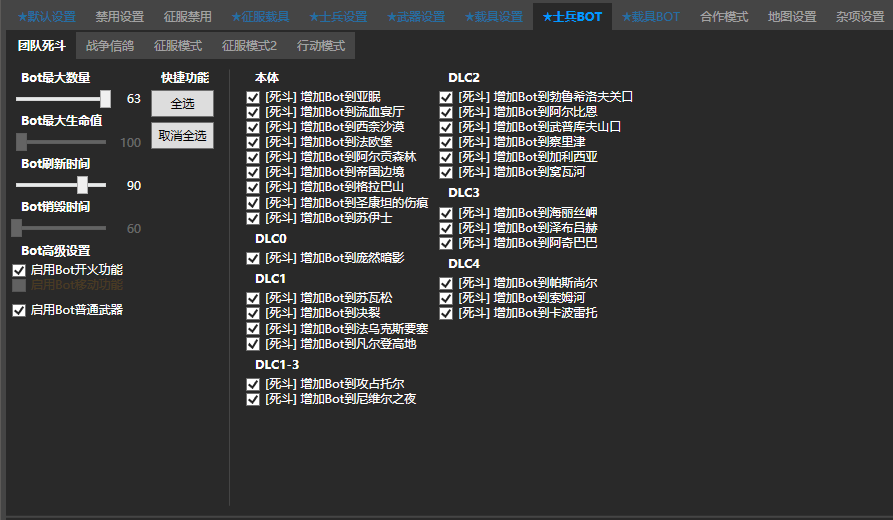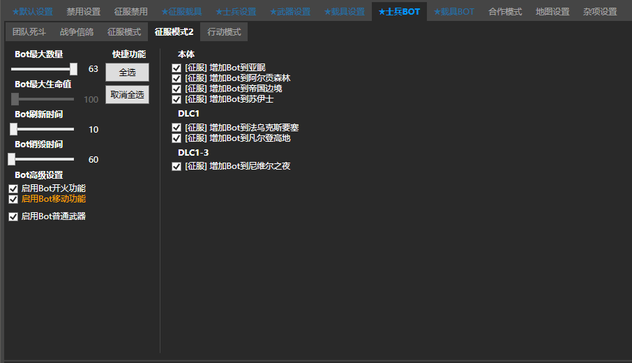 支持步兵Bot模式和地图如下(Bot步兵数量为63个)