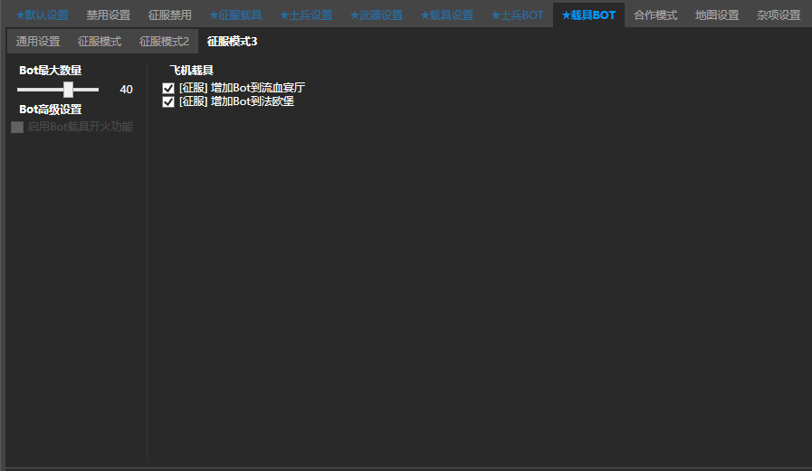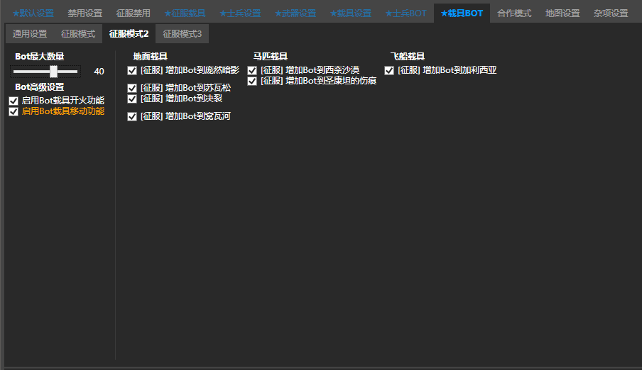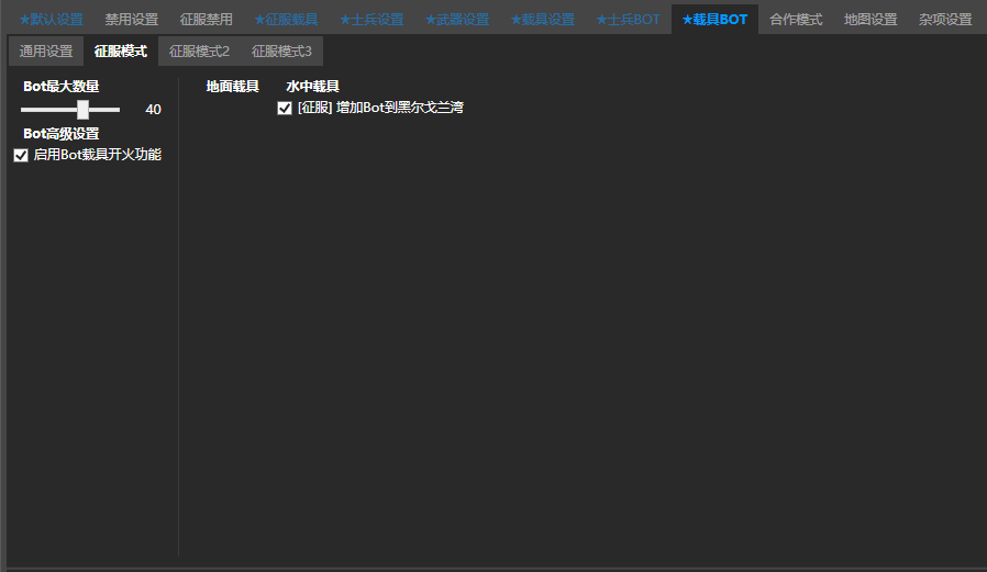 支持载具Bot模式和地图如下(Bot载具数量为40辆)